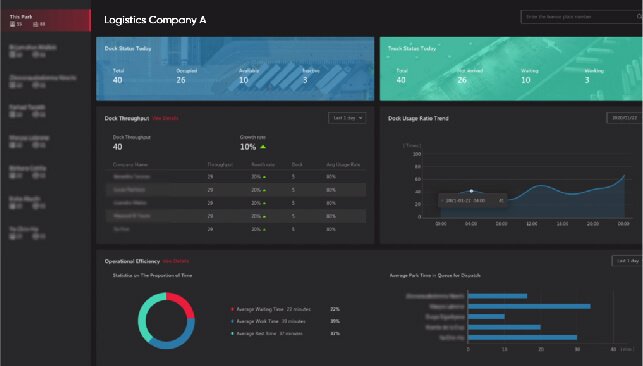 • Logistika parkında fəaliyyət göstərən hər bir şirkətin sahibi və ya meneceri istifadə səviyyəsi, sürücü gözləmə vaxtları və digər göstəriciləri yoxlayaraq dok əməliyyatlarının vəziyyətini, ötürmə qabiliyyəti reytinqini və əməliyyat səmərəliliyini asanlıqla anlaya bilər