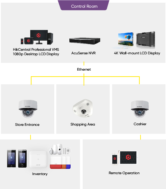 Müştəri yönümlü bir sənaye olaraq, mağazalar daha çox çətinliklərlə üzləşir, məsələn, təhlükəsizliyi olmayan boş sahələr, itkiyə qarşı mübarizə, əməliyyat optimallaşdırılması və s. Mağazalar üçün Scenariyalar üzrə Həllərimiz mağazanızı yüksək təyinatlı video sübut və sürətli təcili cavab ilə təmin edə bilər. Bundan əlavə, Mağaza Həlli məhsullarımız və analizlərimiz ilə birləşdirildikdə, yaxşı düşünülmüş bir mağaza planı və daha yaxşı müştəri axınına səbəb ola bilər ki, bu da əməliyyat səmərəliliyini və gəlir marjlarını artıracaq.